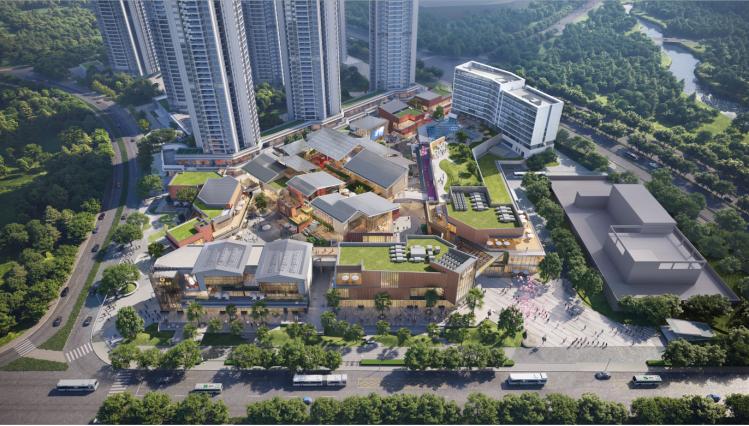 这座商业体量超18万㎡的新项目,整体采用“盒子MALL+空中街区”的空间形式,营造开放、休闲的人文社交氛围,并规划零售旗舰、餐饮体验相结合的一站式MIX业态组合,打造一站式体验社交的漫步新地标。