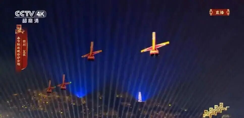 宜宾分会场的夜空中,出现了两款来自中国航空工业集团的无人机——“云影”和“翼龙”,这是中大型无人机首次集群亮相春晚。