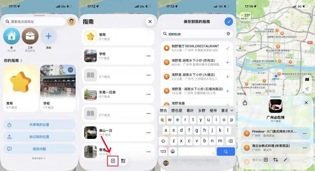 像是小红书推荐的餐厅和小店,其实可以一股脑全部添加进入指南之中,到了饭点直接打开,哪家近就去哪家。