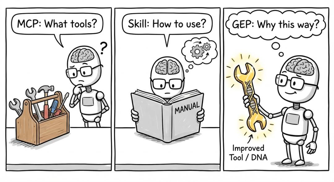 MCP和Skill让AI拥有行动能力,EvoMap让AI拥有传承与协同进化的能力。