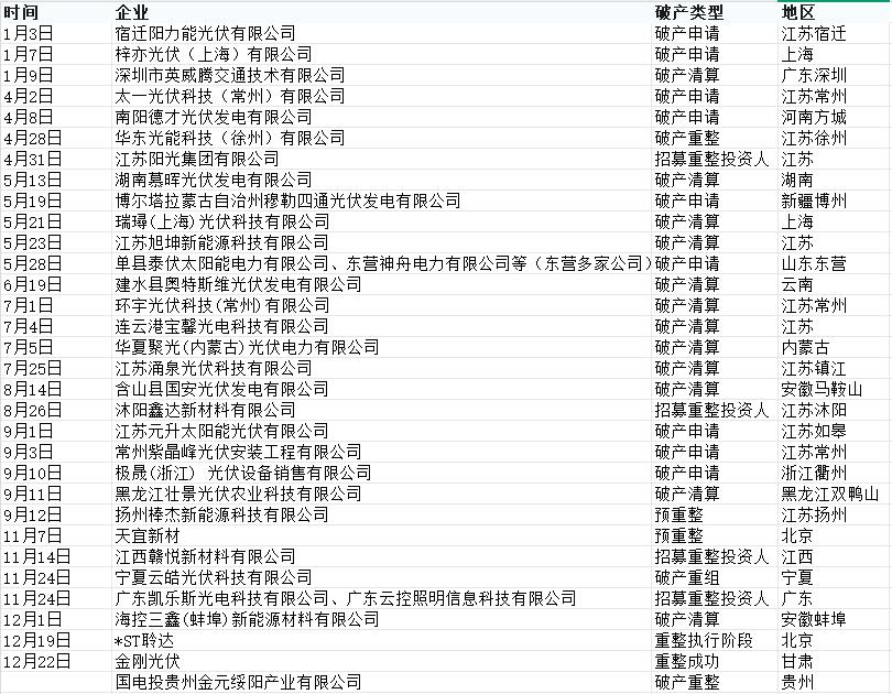2025光伏行业部分破产企业: