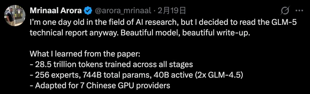 最终确认Pony Alpha真身即是GLM-5,这对团队是一次巨大的鼓舞,也有力回击了长期以来外界对中国本土模型技术水准的质疑。