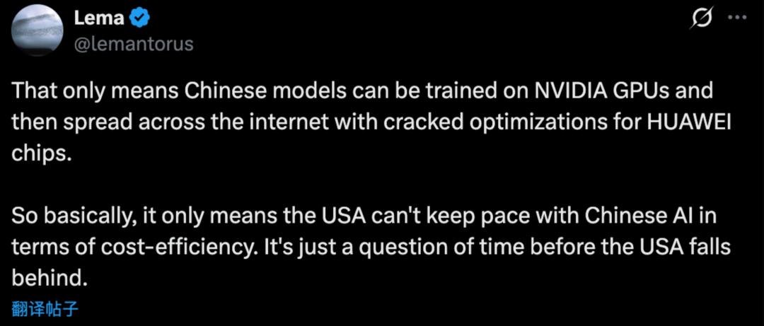 在成本效率方面,美国的AI赶不上中国。