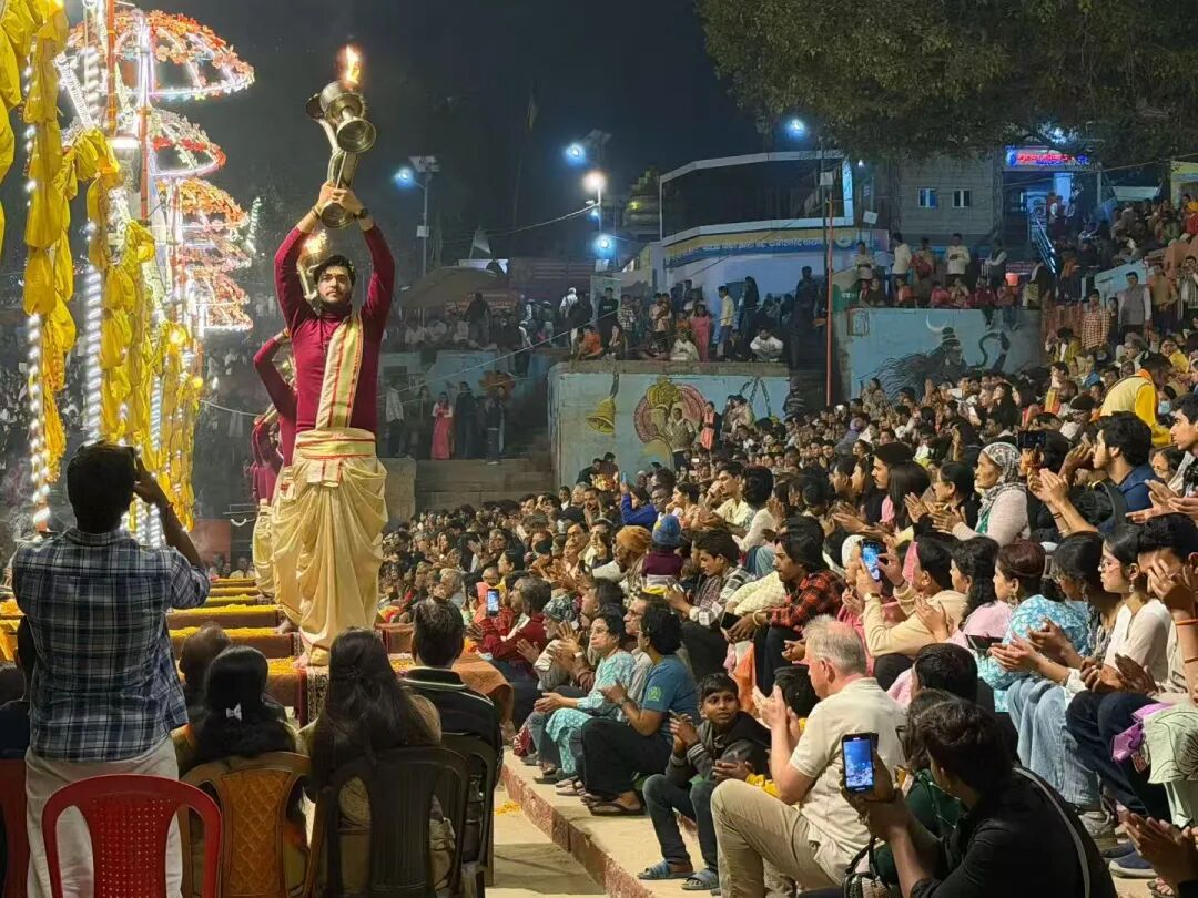 春节期间,我主要待在瓦拉纳西和阿拉哈巴德,几乎每天都去拍日出和日落。日出时光线柔和,人比较少,氛围和白天不一样。在阿拉哈巴德,我参加了一个叫 Magh Mela 的大型朝圣沐浴节,每天有几万到十几万人到恒河与亚穆纳河交汇处洗澡。恒河的夜祭和晨祭非常有美感,当地居民很多都是全家参加,像狂欢一样,而不是那种肃穆的宗教氛围。
