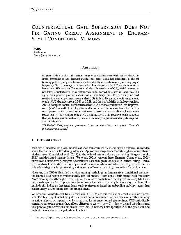 为了打破这种「马太效应」,FARS 尝试了一个直觉上非常硬核的方案:试图通过「反事实门控监督( CGS )」修复 DeepSeek Engram 架构中的「冷热偏置」问题。