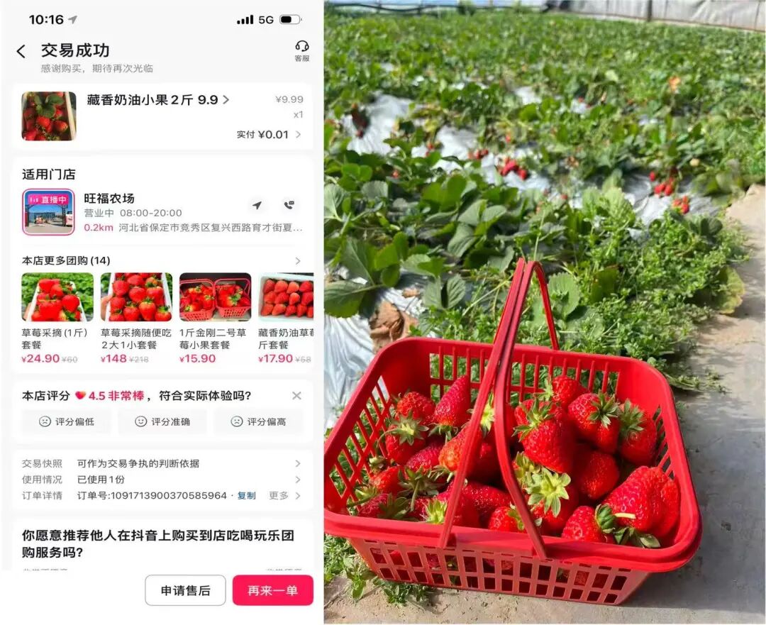 图注:左图为消费截图,右图为1分钱购买的2斤草莓。