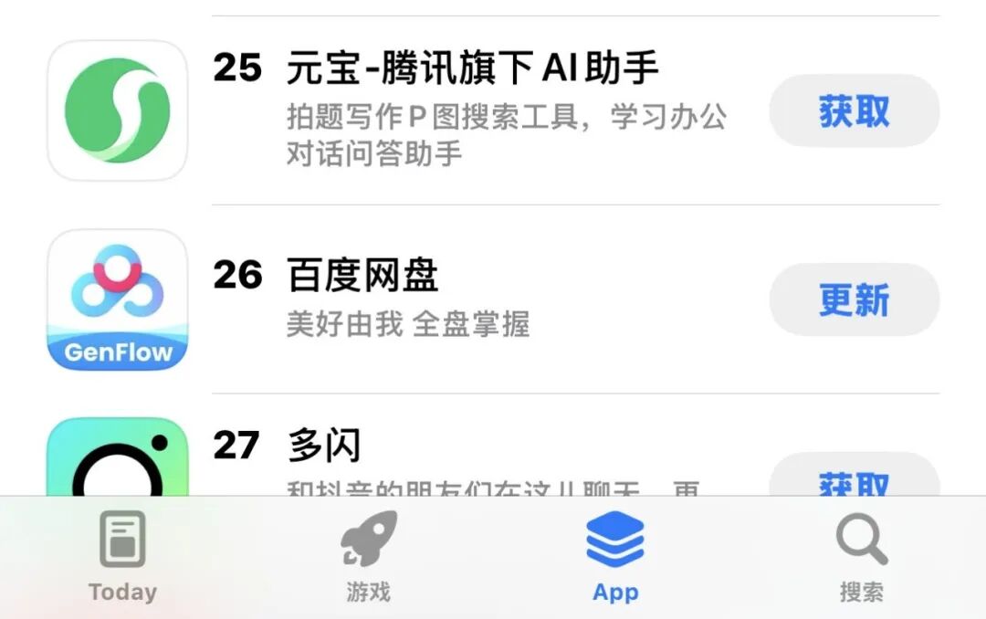 从最新苹果App Store免费榜单看,豆包千问厮杀难解难分之际,元宝滑落明显,一度跌出前三十名。热度下滑外,略显尴尬的是,如今打开元宝App,默认调用的居然是DeepSeek模型,而非自研的混元。在四家大厂中,腾讯是唯一未能将自有模型,作为对外竞争核心叙事的公司。同时寄予厚望的元宝派,也因为较为粗糙被用户吐槽,很久未有人提及。