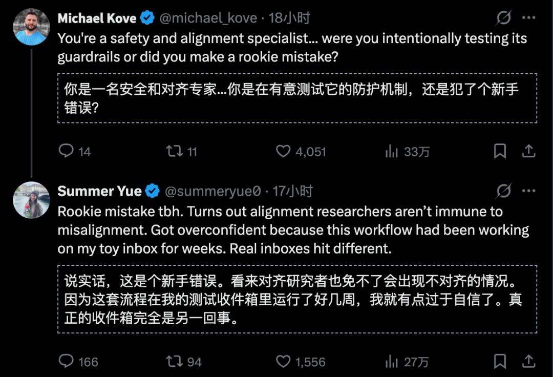 很多人嘲笑她:一个研究AI安全的人,被AI坑了,多讽刺。