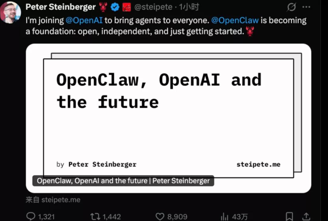 而OpenClaw的创造者Peter Steinberger?他已经加入了OpenAI,并表示正在优先构建更完善的安全机制。