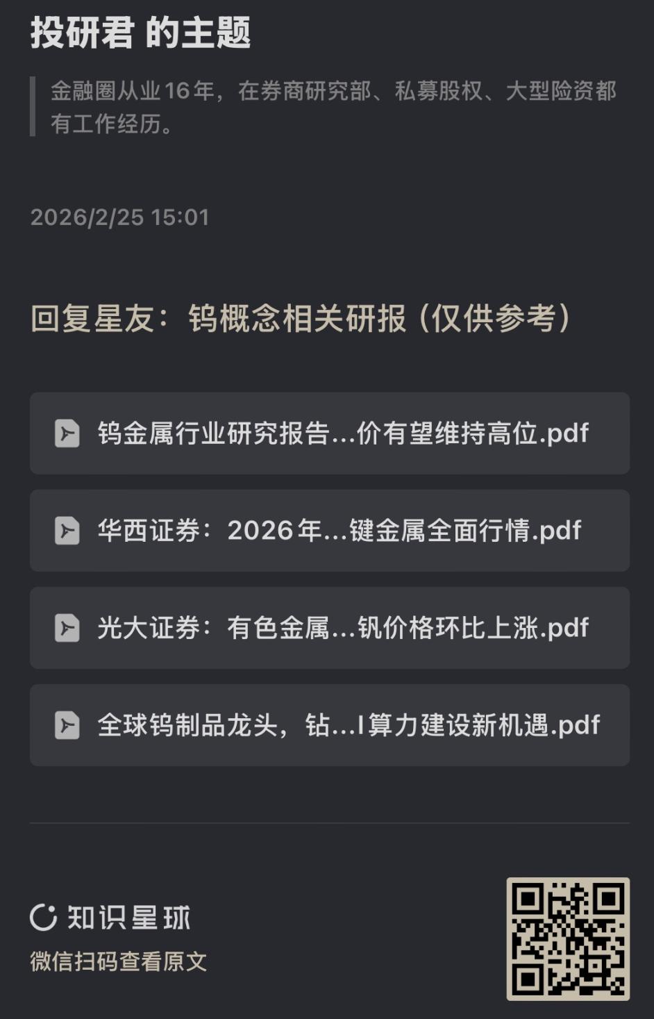 除了刚才说的光伏钨丝,它还是全球唯一通过ITER(国际热核聚变实验堆)全流程认证的钨材料供应商,核聚变钨制品全球市场份额超50% 。这种布局,让它面对周期波动时,有足够的缓冲垫。虽然弹性可能不如纯钨标的,但稳,是它的底色。