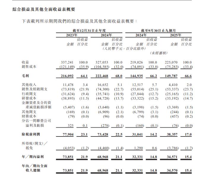 在中国前五大住宿业数字化服务商中,绿云软件为过去五年(2020年–2024年)内唯一持续每年实现盈利且同期累计净利润最高的公司,2023年、2024年和2025年前九个月,绿云软件的营业收入分别为3.37亿元、3.27亿元和2.25亿元,相应的净利润分别为7385.1万元、6896.8万元和3457.1万元。