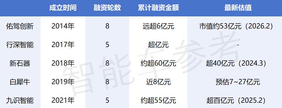 2018年成立的新石器,截至目前已完成至少8轮融资,累计融资超60亿元;到今年一月的无人车队数达1.6万台。