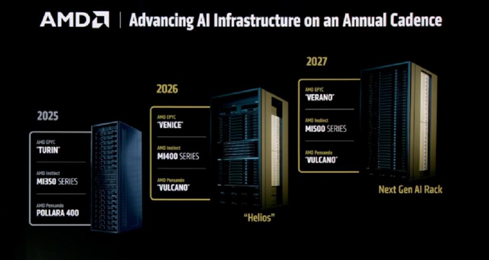 ▲AMD CPU、GPU和机架的路线图(图源:AMD)