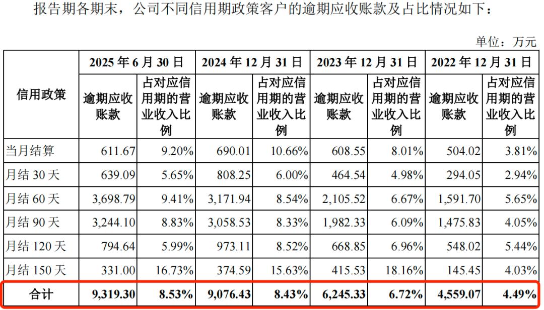 面临现金流压力背后,公司应收账款逾期金额连年增长。报告期各期末,公司逾期应收账款的余额分别为4559.07万元、6245.33万元、9076.43万元和9319.30万元。