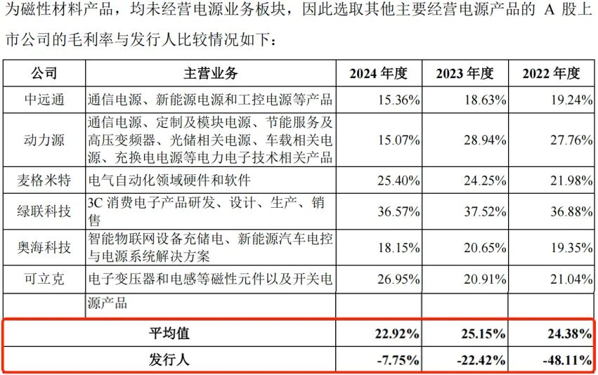 2022年至2024年,公司电子元器件业务的毛利率均低于同行公司;电源业务的毛利率分别为-48.11%、-22.42%、-7.75%,一直处在亏损状态。