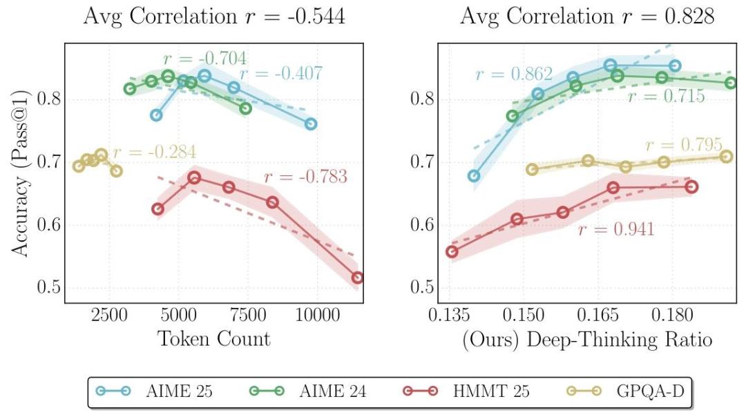 新研究抛弃字数论,甩出衡量模型推理质量的全新标准DTR,专门揪模型是在真思考还是水字数。