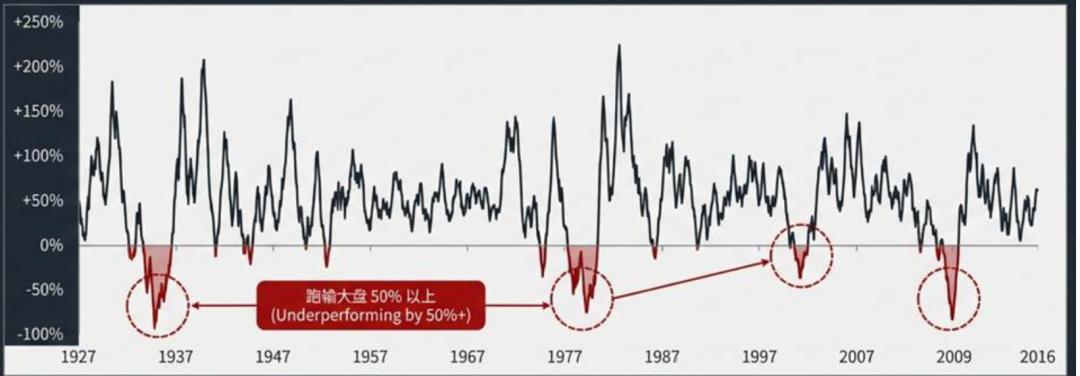 第三,如果你无法承受三年跑输,那么指数化投资可能更适合你。