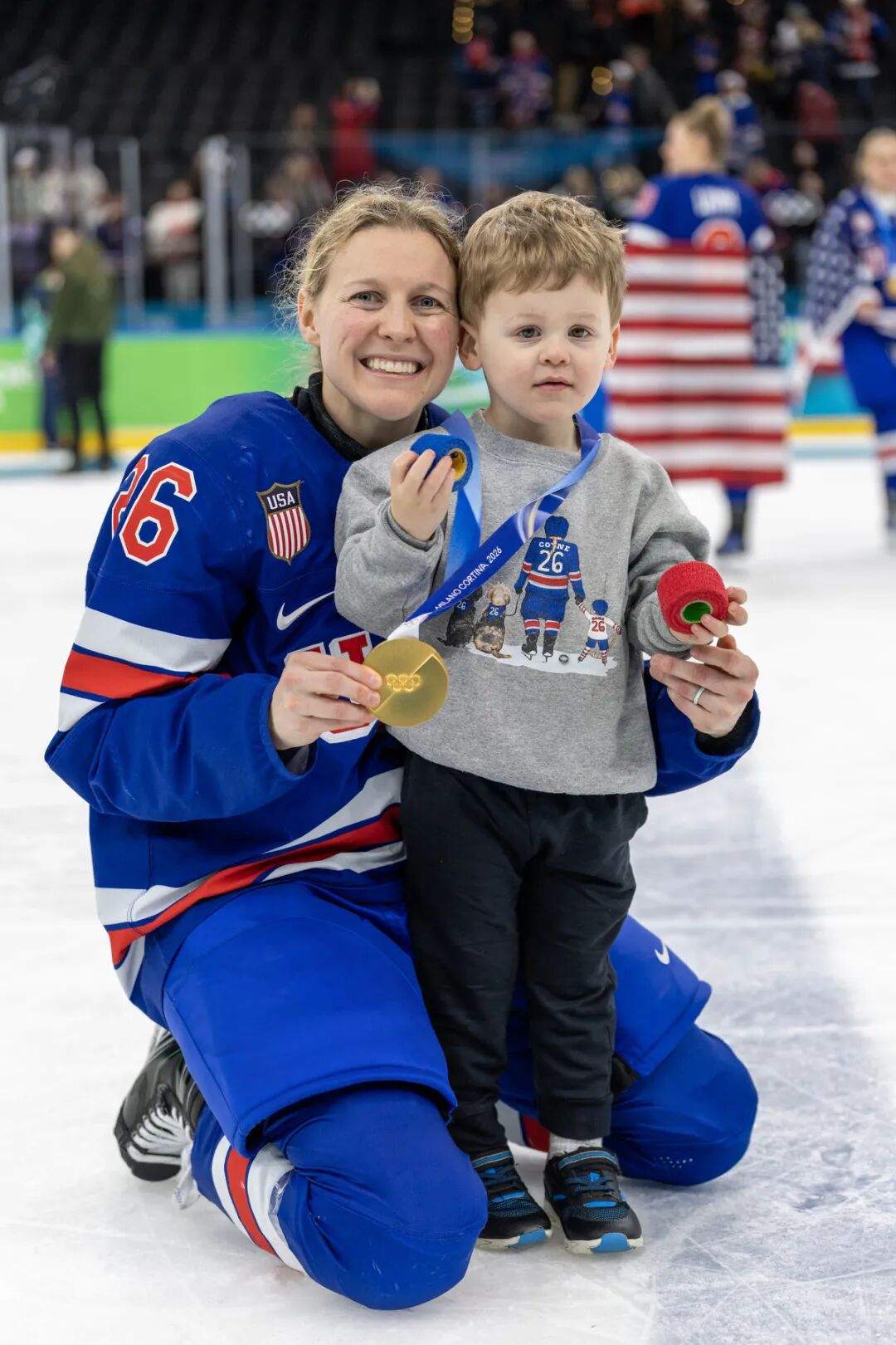 塔比莎·彼得森、肯德尔·科因·斯科菲尔德……她们在不同项目里站上领奖台,也把奖牌挂在孩子的脖子上。