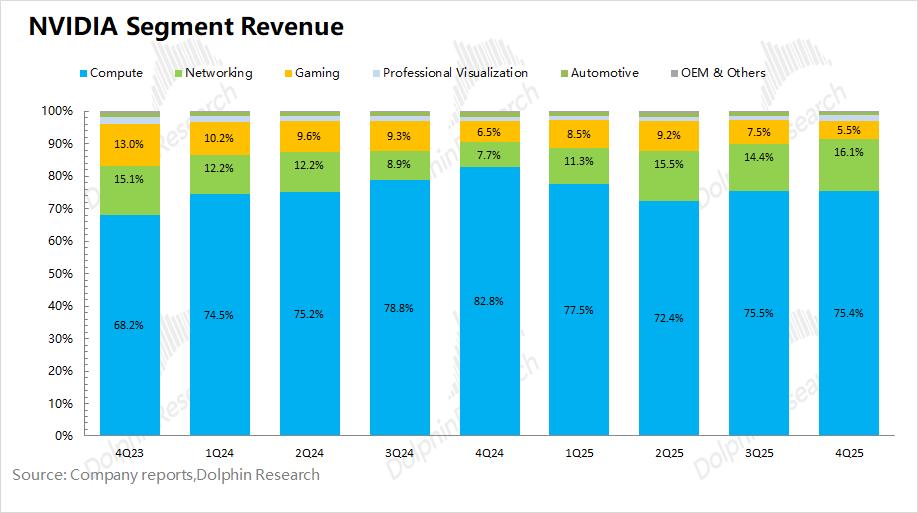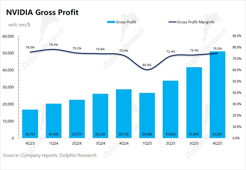 2.2 毛利率(GAAP):2026财年第四季度(即4Q25)英伟达实现毛利率(GAAP)75%,符合市场预期(74.8%)。此前公司毛利率的“闪崩”,主要是受H20禁令的影响。