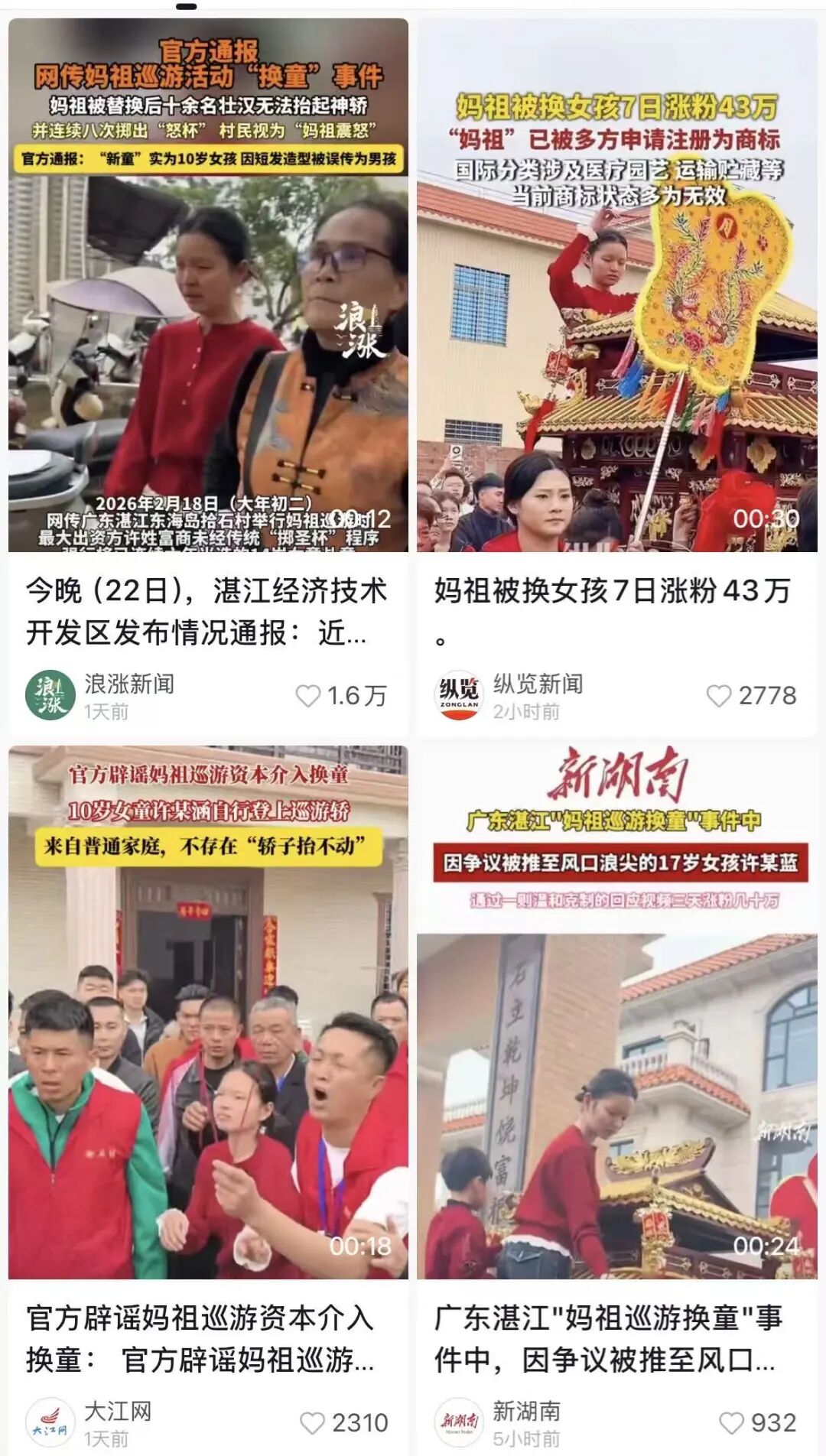 在互联网的放大镜下, 湛江东海岛东山街道什石村的一场妈祖巡游, 经历了一次始料未及的风暴。 先是“抢童”的传言在短视频平台流窜, 后是“资本介入”“掷杯换人”的揣测甚嚣尘上。