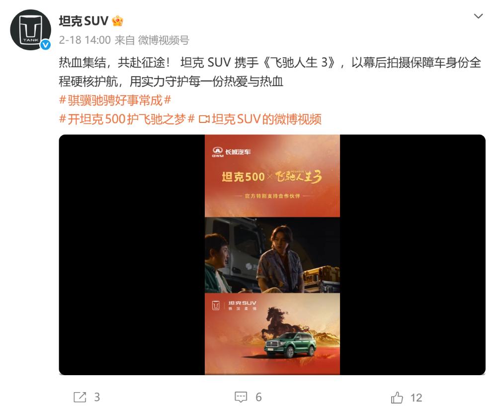 坦克品牌与《飞驰人生3》的合作