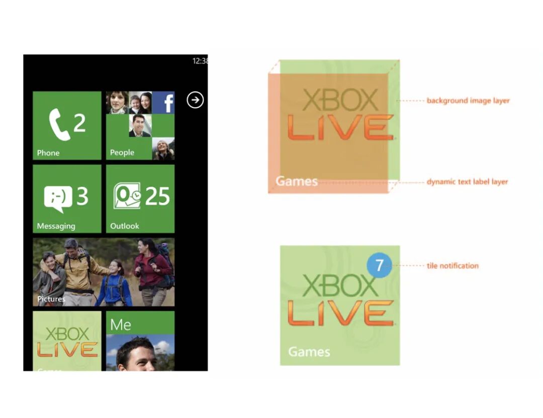 Microsoft Design Language 理念的第一次完整落地,则是在 Windows Phone 7/8 上。当年的 Windows Phone 主屏幕上,陈列的并不是一排排静态图标,而是一块块实时发生变化的用户信息切片。