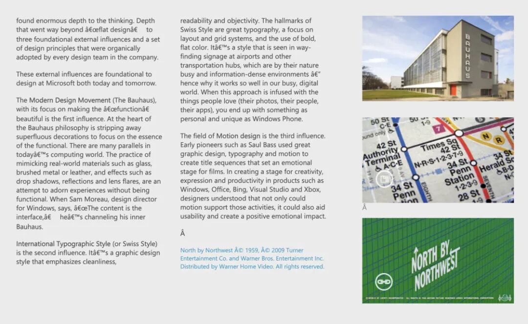 在微软早期的设计官网中,设计团队成员 Steve Clayton 将这场操作系统交互范式的转变,类比为计算机图形界面领域的一次「包豪斯运动」。