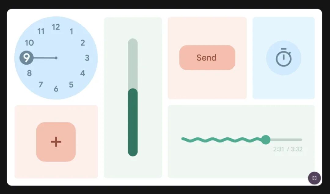 Android 的 Material You 小组件简洁、大信息块、动态但不突兀。