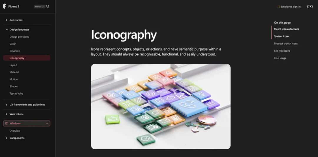 甚至 Windows 11 的 Fluent Icon 以相同的几何构造、强调简化轮廓,继承 Microsoft Design Language 时代线性、抽象、几何化的图标语言。