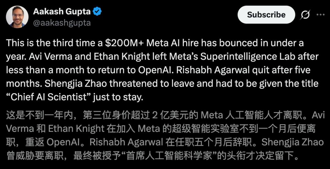 而且,这还是不到一年内,第三位身价超2亿美元的Meta人才的离职。