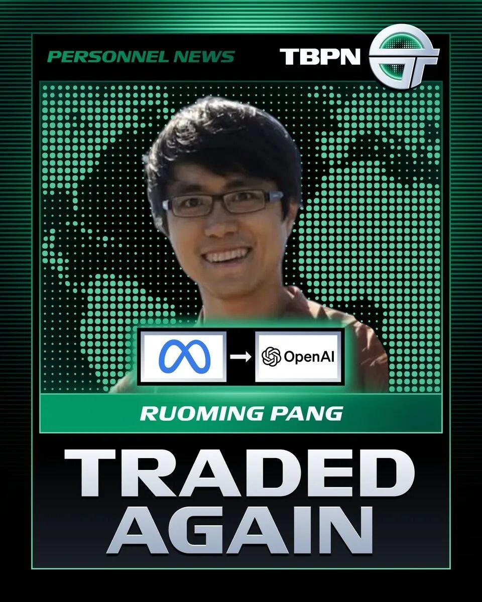 短短一年的时间,庞若明从苹果到Meta,再到OpenAI完成了三级跳。