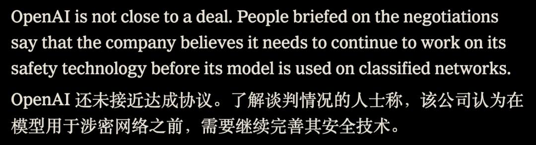 虽然 OpenAI 的 ChatGPT 目前仍在机密网络之外,且由于复杂的安全问题距离达成协议尚有距离,但大门已经敞开。