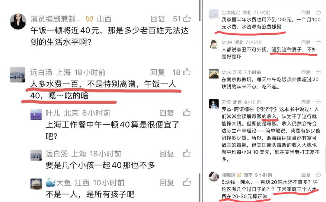从价格的争论、对人的评判,到网友自己的经历、再讲起经济学……讨论内容早已脱离了话题本身,事件不过提供了发泄的引子,最终,评论区成为了表达自己不满的场域。