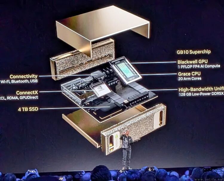 从后续的曝光信息来看,我们那个时候的猜测几乎全都“命中”。比如我们认为它的CPU、GPU规模不会小,事实证明其集成了足足10个Cortex-X925和10个Cortex-A725核心,以及与桌面版RTX5070相近的GPU规格(6144 CUDA核心,但频率和显存带宽稍低)。