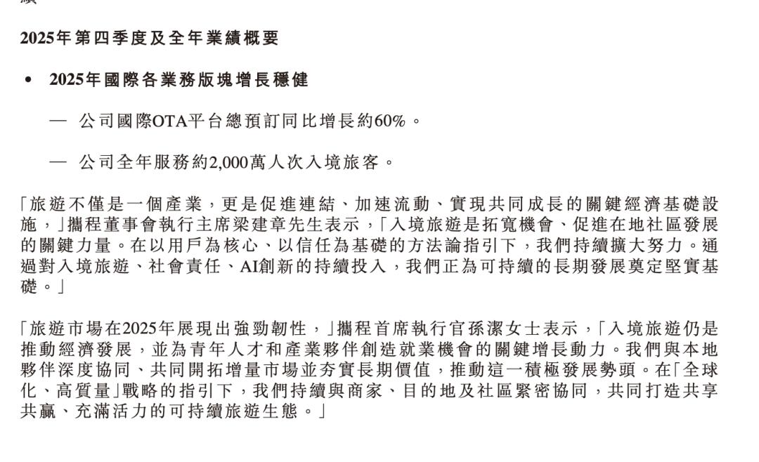 携程2025年销售及营销费用同比激增25%,达149亿元,携程管理层在电话会议上表示,2025年,携程的营销活动主要在亚洲市场进行,不过,未来将按计划继续加强全球营销投资。