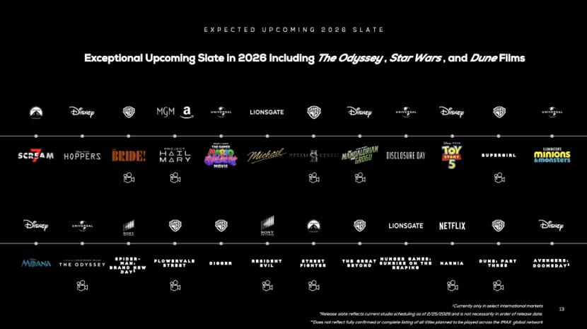 虽然全球电影市场遇到挑战,作为电影市场的风向标,IMAX依然传递出极大的市场信心,“我们相信,我们远未达到巅峰,而是处于发展和成长的阶段。”而从这场电话会议,也可以清晰看到2026年有哪些大片储备。