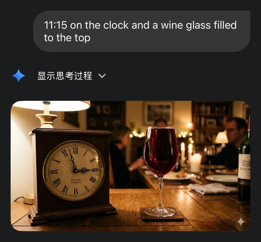 Nano Banana Pro生成的时钟和满杯酒测试