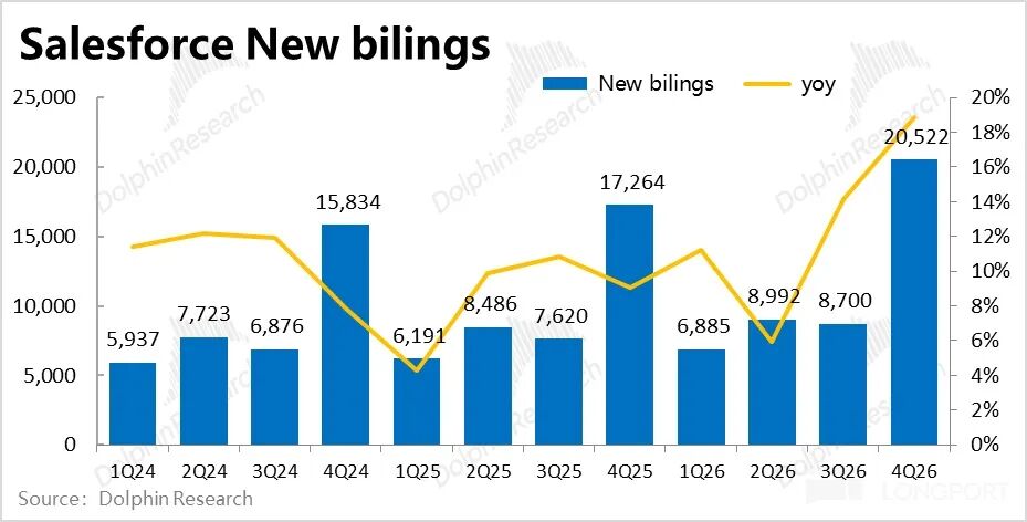 近期在 “AI 杀死 SaaS” 叙事下,受冲击最严重之一的CRM,美东时间2月25日美股盘后公布 2026 财年 4 季度财报(截止 1.31 日),整体来看业绩表现一般。