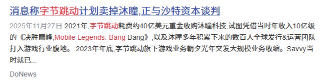 在这之后,随着字节跳动把游戏重心从“大作” “中重度游戏”转为“休闲级”,沐瞳科技也渐渐传出了将出售给沙特Savvy Games Group的消息。