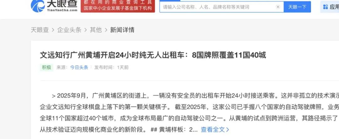 全球其他地方也在观望。中国倒是动作快,根据天眼查App显示,百度萝卜快跑、文远等早已经跑出了国外运营。