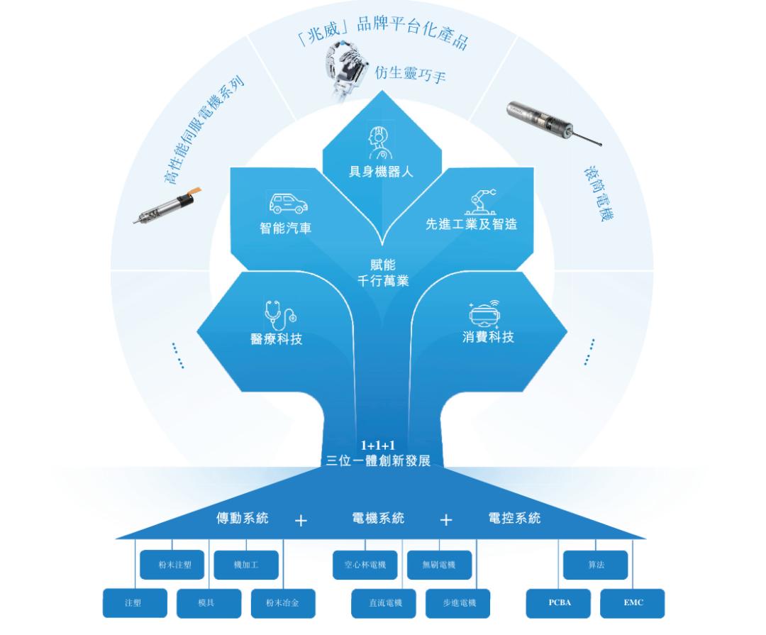 截至目前,兆威机电已推出三大平台化自主品牌产品,即高性能伺服电机系列、滚筒电机及灵巧手。兆威机电的自主品牌产品覆盖高端智能消费产品、先进制造及人形机器人等高潜力行业。
