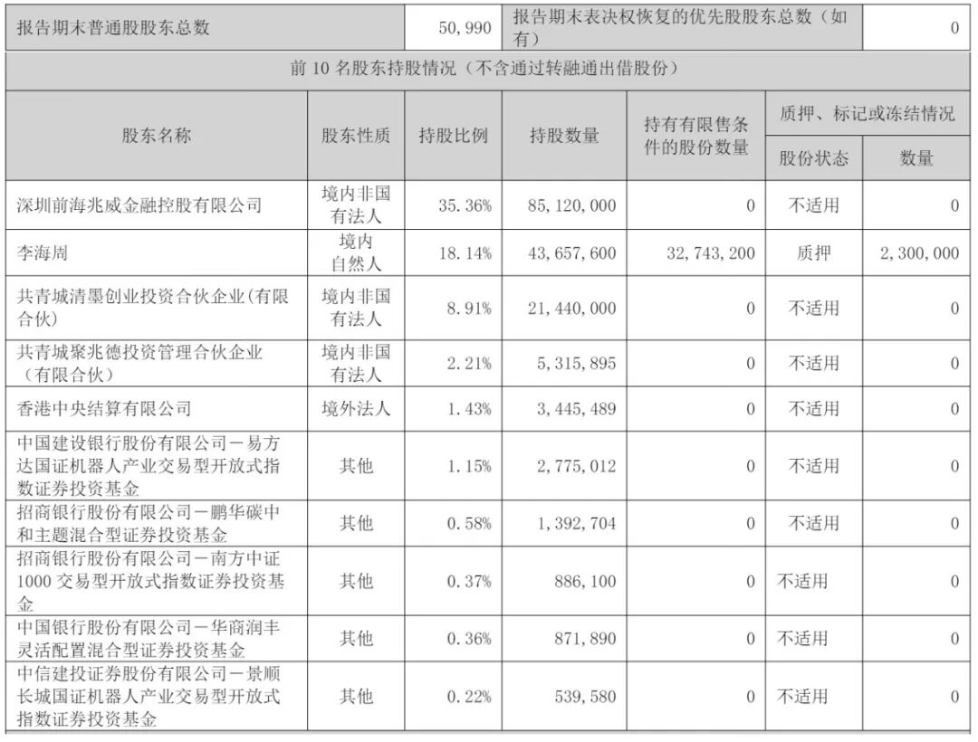 截至2025年9月30日,深圳前海兆威金融控股有限公司持股为35.36%,李海周直接持股为18.14%,共青城清墨创业投资合伙企业(有限合伙)持股为8.91%,共青城聚兆德投资管理合伙企业(有限合伙)持股为2.21%;
