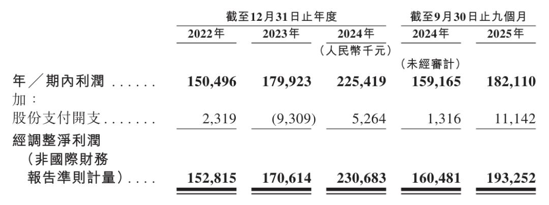 兆威机电2022年、2023年、2024年经调整净利分别为1.53亿、1.71亿、2.31亿;2025年前9个月经调整净利为1.93亿元。