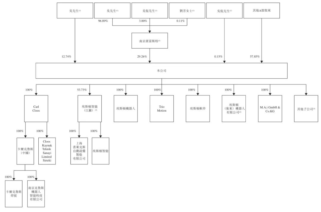 埃斯顿控股股东集团包括吴波、吴侃(吴波之子)、刘芳女士(吴先生的配偶)及南京派雷斯特。