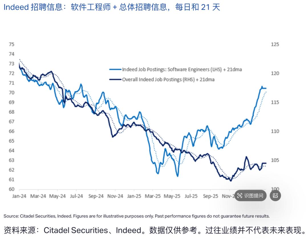 首先,Citrini认为像软件工程师这样的白领会被AI替代,但Citadel指出,现在软件工程师的需求其实是在增加的,其职位空缺同比增长11%。