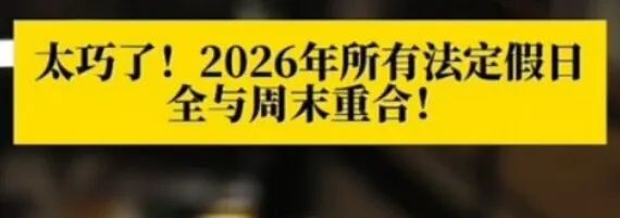 “2026年所有法定假日全与周末重合”,这个话题以前所未有的速度冲上热搜第一,阅读量瞬间破亿,引发全网热议。