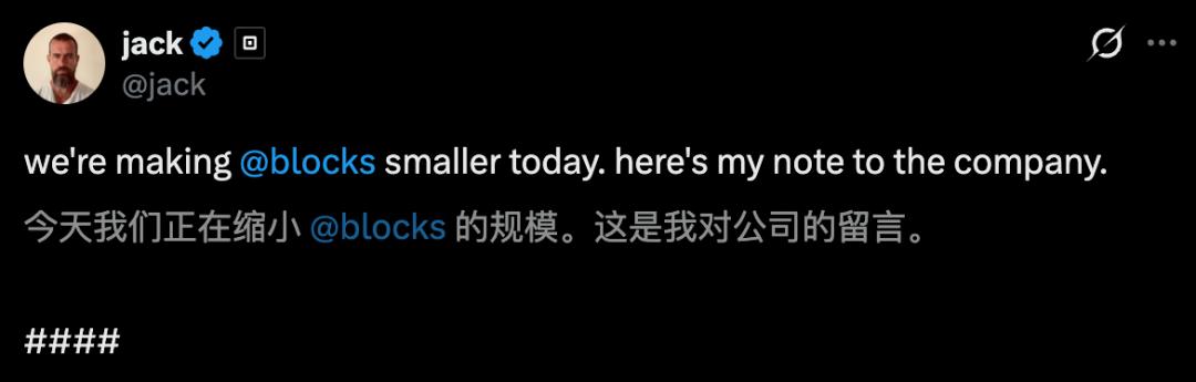 就在刚刚,创始人Jack Dorsey的一封全员信,毫无征兆地裁掉了Block 40%的员工。