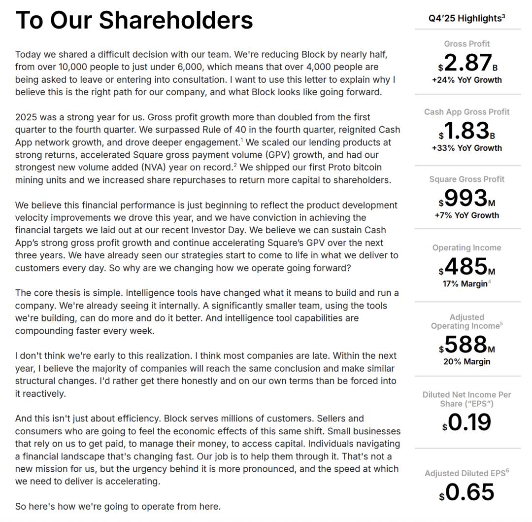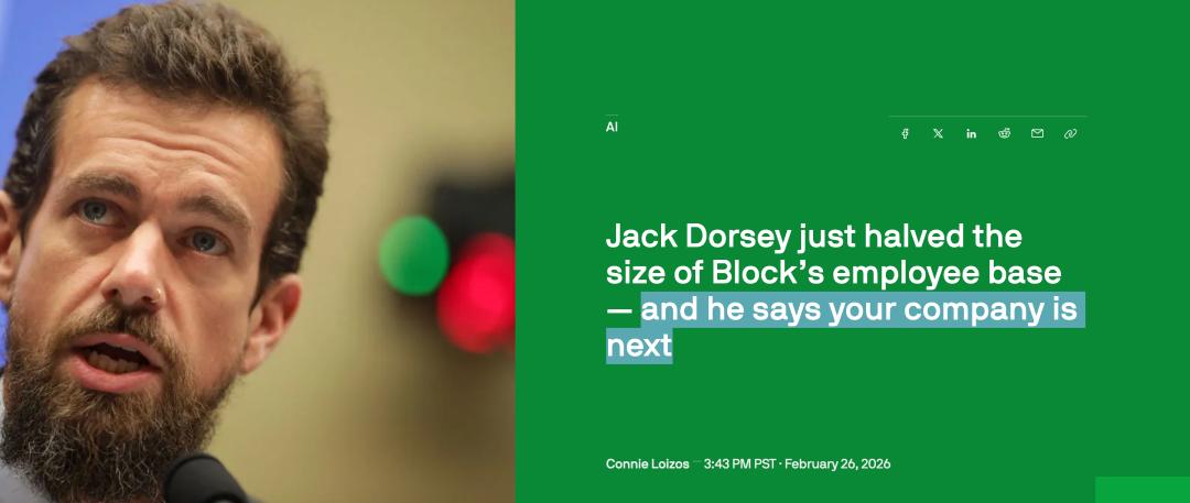 人类已无后路?今天,硅谷支付巨头Block暴裁40%员工,股价却疯涨25%。联创Jack Dorsey千字全员信:与其缓慢等死,不如用AI替代平庸打工人。