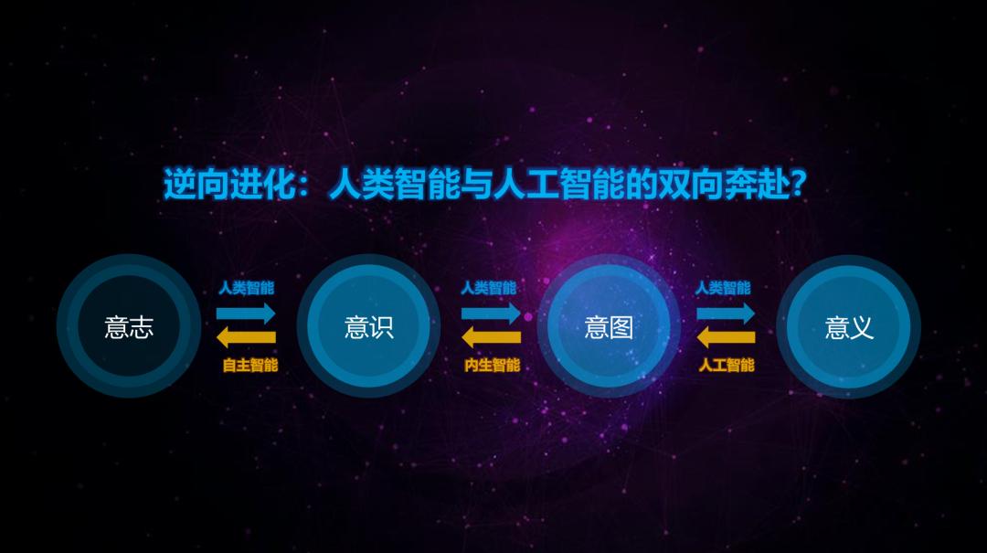 人工智能还蕴含着一个巨大的可能性:实现人和劳动的“第五次解耦”,把人从劳动的奴役中解放出来,重新实现“人之为人”的价值。这也意味着,智能科技可以成为未来社会解决方案的一部分。在这个过程中,人和智能正在发生双向、丰富的进化。智能从“意义”走向“意识”,而人则天生具有意志与意识,正在向更高层次的意图与意义发展。
