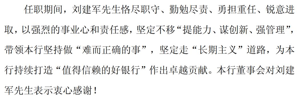 对于刘建军任上的一系列成就,邮储银行给予中肯、积极的评价: